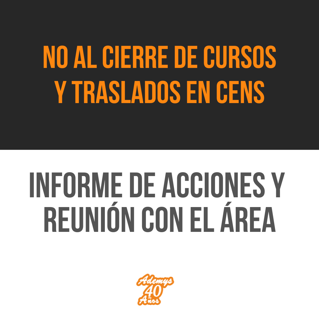Desde Ademys insistimos en la demanda de promover políticas que promuevan la asistencia a los CENS y un real acompañamiento para que puedan terminar sus estudios quienes lo necesiten. Propusimos concretamente, que frente a la gravedad de la crisis socioeconómica se implementen: boleto educativo, becas y ayudas económicas, comedores escolares en las sedes y espacios de cuidados para las infancias.